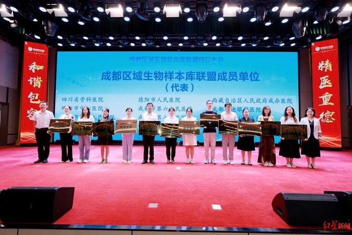 四川大学华西口腔医院、华西第二医院、西部战区总医院、成都市第五人民医院等34家医疗卫生机构,成都海关、四川新生命干细胞科技股份有限公司、天府锦城实验室等14家机构作为发起单位获授牌,《成都区域生物样本库联盟章程》同步发布。