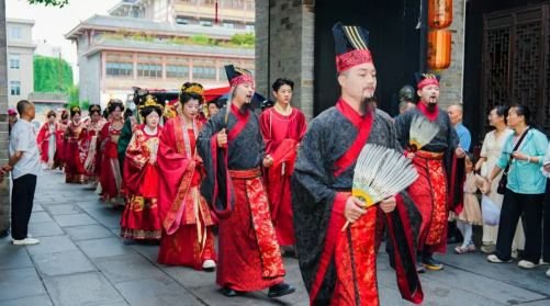 在青白江区,成都市第21个公园婚姻登记处在城厢古城正式启用。该登记处建筑面积约209㎡,深度融合城厢古香古色文化,打造“一中心+N场景”独具风格的婚姻登记场所。内设登记区、候登区、颁证室、档案室、婚姻辅导室及文明婚俗文化墙;外设拍照打卡微景观,以生动有趣的形式传播文明婚俗文化。当天举行的还有“蓉城喜事・爱在城厢・浪漫启幕”七夕集体颁证暨文明婚俗宣传活动。活动现场,红绸映“囍”,青砖黛瓦间古韵流淌。婚书颁发、花轿引路、月老牵线等定制古雅仪式接连上演,让众人深切感受中华传统婚俗魅力,新人亦在文化熏陶中坚定婚姻承诺。