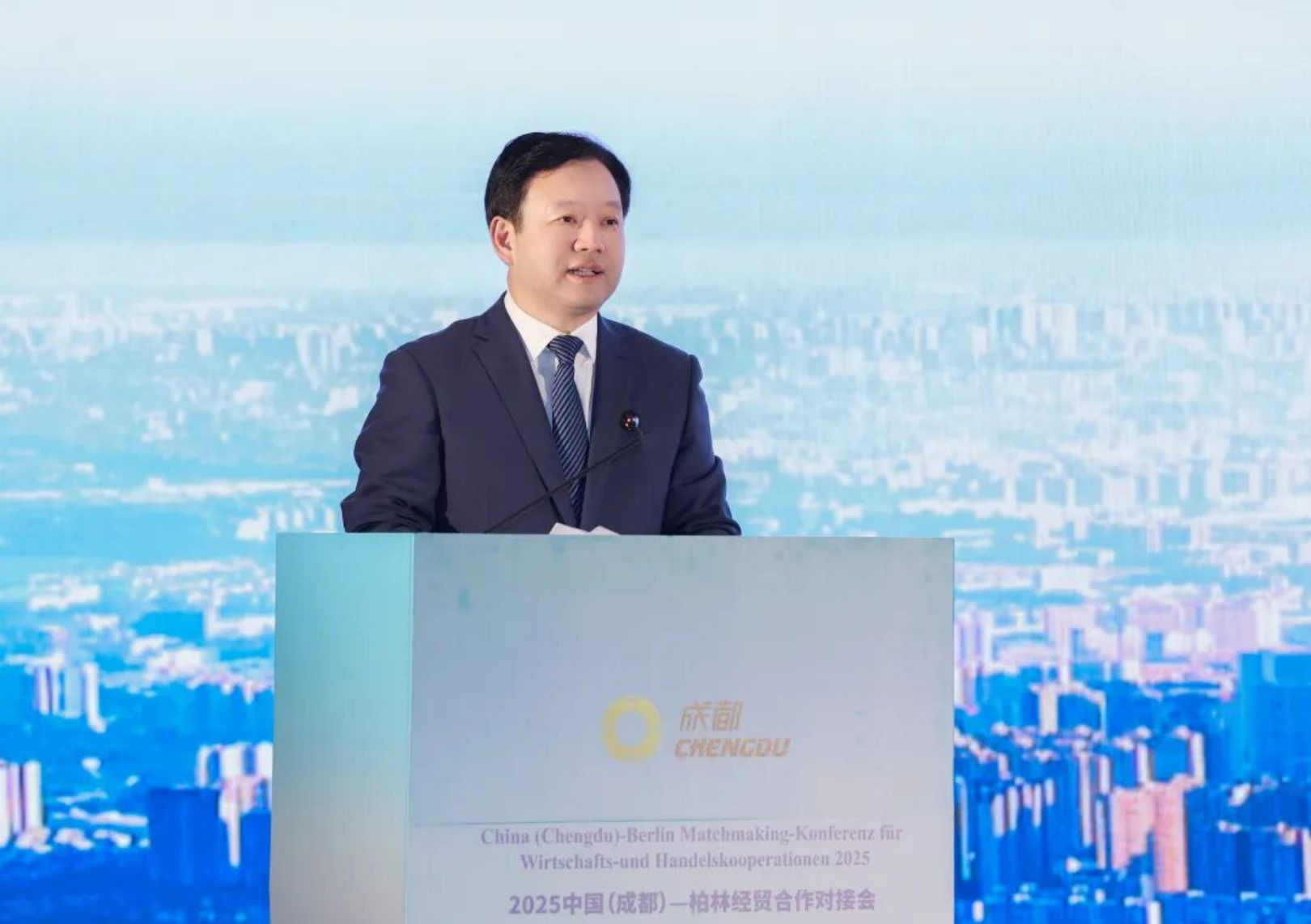10月15日,省委常委、市委书记曹立军在2025中国(成都)—柏林经贸合作对接会上致辞