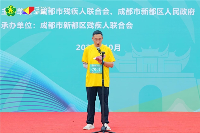 全体起立奏唱国歌后,新都区人大常委会副主任伍涛登台致辞。紧接着,运动员与裁判员代表分别上台,郑重许下承诺。随着市残联党组成员、副理事长赵小明宣布活动正式启动,现场顿时响起雷鸣般的掌声与阵阵助威声。