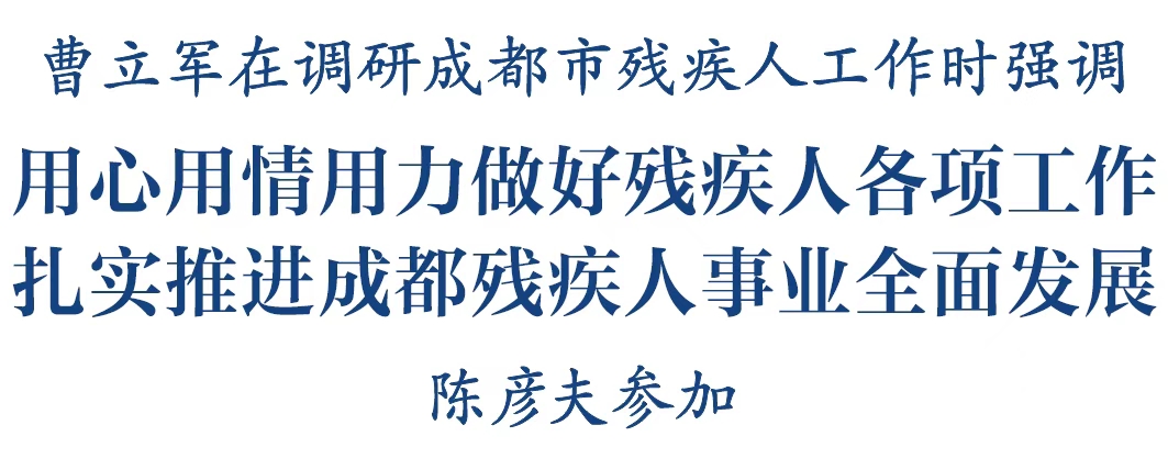 1月20日,省委常委、市委书记曹立军调研成都市残疾人工作。他强调,要深入学习贯彻习总书记关于残疾人事业的重要论述,全面落实党中央、国务院和省委、省政府部署要求,进一步加强残疾人关爱帮扶和权益保障,用心用情用力做好残疾人各项工作,扎实推进成都残疾人事业全面发展。
