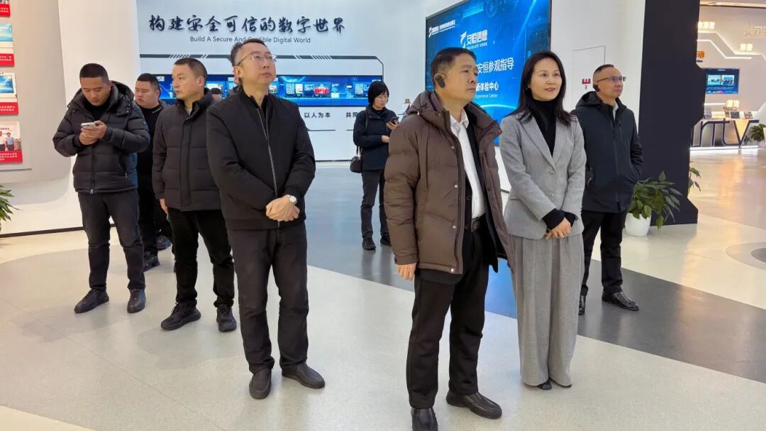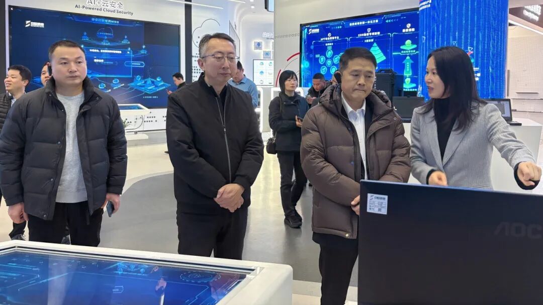 在杭州安恒信息技术股份有限公司展厅,企业负责人围绕公司在网络安全、数据安全、云安全等领域的技术实力与服务体系进行详细讲解,全面分享安恒信息在AI时代下的安全防护解决方案,以及在服务政府、企业数字化转型中的实践案例。