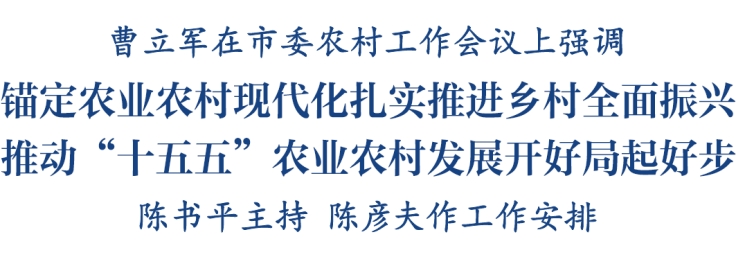 曹立军强调,要全面加强党对“三农”工作的领导,认真落实五级书记抓乡村振兴要求,不断提高抓“三农”工作本领,牢固树立和践行正确政绩观,深入整治形式主义为基层减负,充分激发干事创业活力,推动乡村全面振兴取得新进展、农业农村现代化再上新台阶。