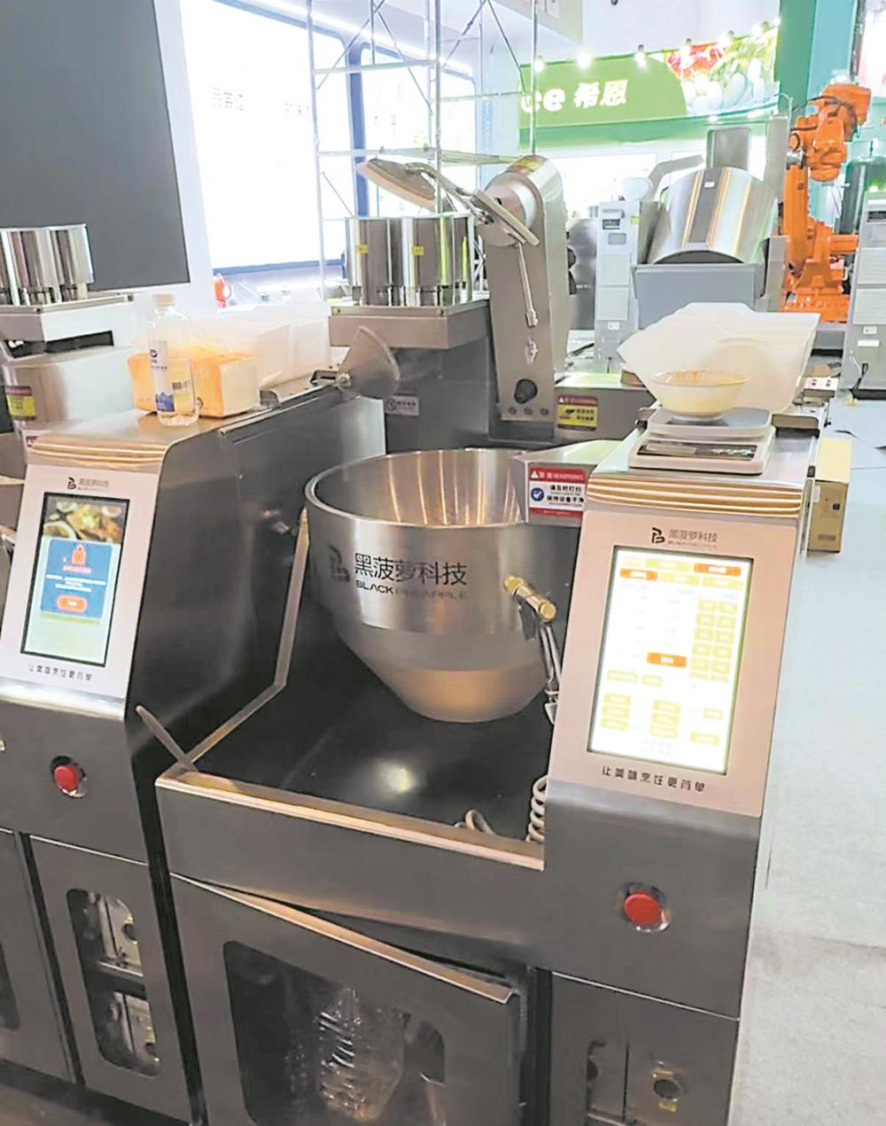 一份蒜苗炒腊肉,腊肉300克、蒜苗230克,调料需菜籽油50.0克、鸡精1克、味精2克,烹饪用时1分29秒……在成都海科机械设备制造有限公司展位,研发人员蒋宇一边用手指着机器人的操作面板,一边耐心向记者介绍,“只要把食材、配料准备妥当,一键开启,全流程都交给机器人就行,最省心的是炒完菜它还能自己清洗锅具。”