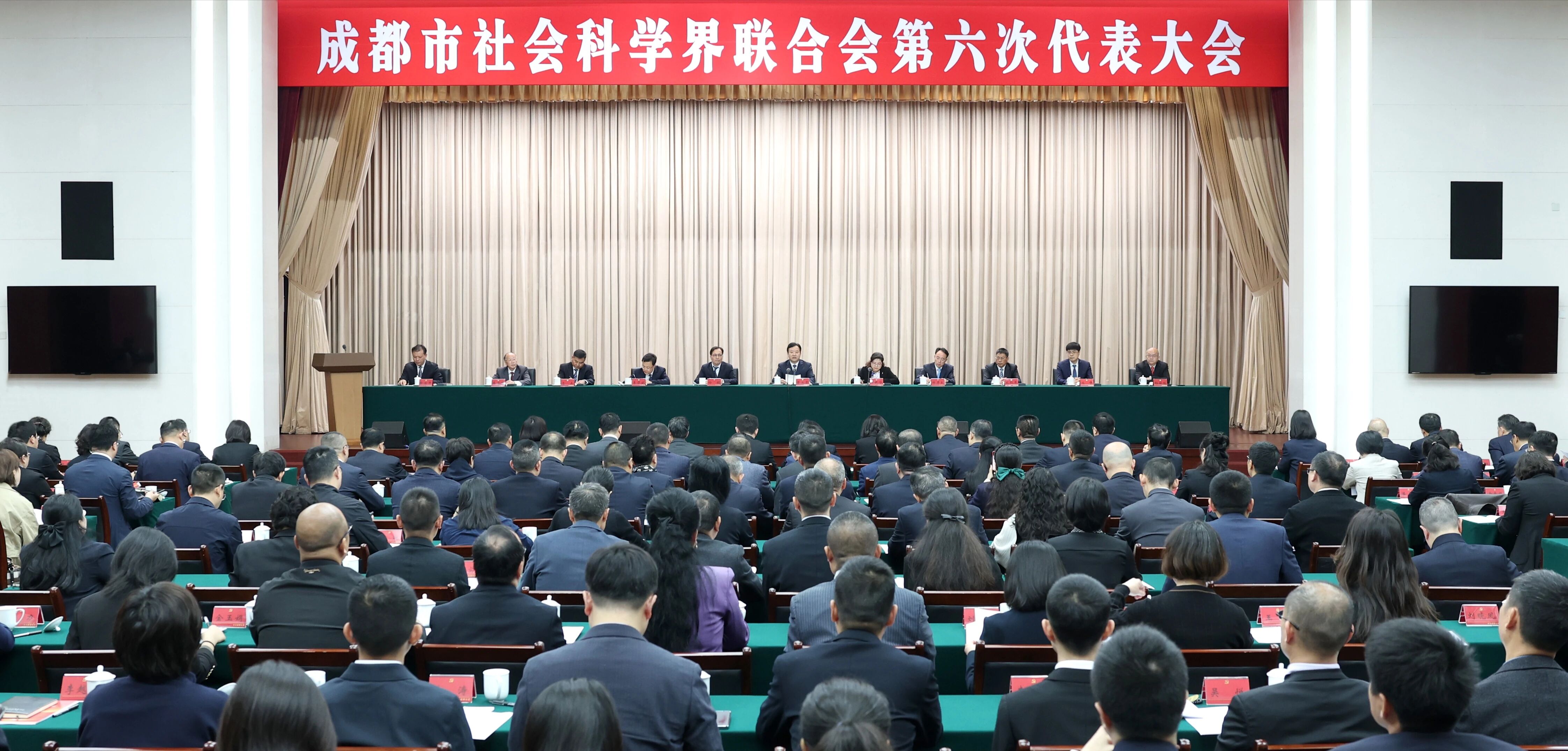 曹立军在讲话中代表市委向大会的召开表示祝贺,向全体代表和全市广大哲学社会科学工作者致以问候,对近年来成都市哲学社会科学事业取得的成绩和市社科联的工作给予肯定。他强调,习总书记对哲学社会科学工作作出一系列重要论述,为新时代哲学社会科学繁荣发展指明了方向、提供了根本遵循,构成习近平文化思想的重要内容。省委高度重视哲学社会科学发展,提出要繁荣发展哲学社会科学。迈步新征程、奋进“十五五”,需要包括哲学社会科学战线在内的全市各方力量共同努力,也为繁荣发展哲学社会科学提供了广阔空间。希望全市各级社科联和广大哲学社会科学工作者始终牢记习总书记殷切嘱托,认真落实党中央和省委部署要求,坚持“二为”方向、“双百”方针,守正创新、开拓进取,在理论研究、服务发展、为民造福、社科普及上取得更大成效,为奋力谱写中国式现代化成都新篇章作出新的贡献。