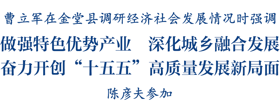 4月8日,省委常委、市委书记曹立军前往金堂县调研经济社会发展情况。他强调,要深入学习贯彻习总书记对四川工作系列重要指示精神,认真落实党中央和省委、市委决策部署,锚定目标、真抓实干,做强特色优势产业,深化城乡融合发展,奋力开创“十五五”高质量发展新局面。