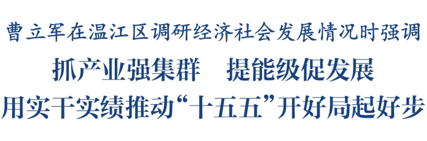 4月22日,省委常委、市委书记曹立军前往温江区调研经济社会发展情况。他强调,要深入学习贯彻习总书记对四川工作系列重要指示精神,全面落实党中央和省委、市委决策部署,锚定高质量发展首要任务,凝心聚力、奋发进取,抓产业强集群,提能级促发展,用实干实绩推动“十五五”开好局起好步。